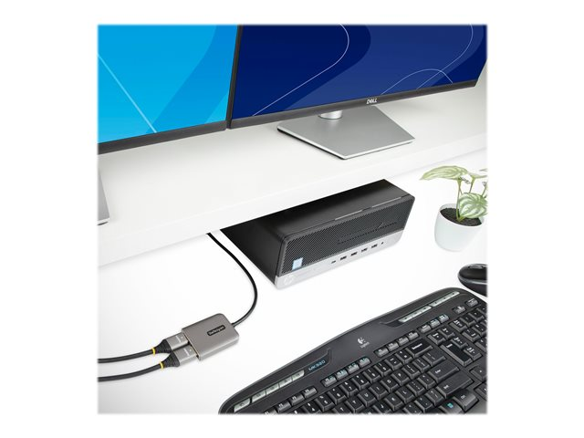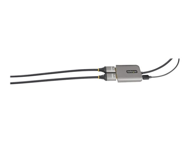 Specifikation Produktbeskrivning StarTech.com DP to Dual HDMI MST HUB, Dual HDMI 4K 60Hz, DisplayPort Multi Monitor Adapter with 1ft (30cm) Cable, DP 1.4 Multi Stream Transport Hub, DSC | HBR3, DP to 2x HDMI Ports - DP to HDMI Splitter (MST14DP122HD) - videokort - DisplayPort / HDMI Kabel Videokort - DisplayPort / HDMI Max effektupplösning 3840 x 2160 - 60 Hz Färg Grå Kontaktdon DisplayPort - hane Kontakt (andra änden) 2 x HDMI - hona Standarder som följs DisplayPort 1.4 Egenskaper Display Stream Compression (DSC), HBR3-ljudstöd, Multi Stream Transport (MST), 7.1 kanalers surroundljud Tillverkarens garanti 3 års garanti -