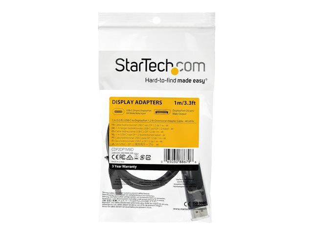 CDP2DP1MBD - StarTech.com USB C till DisplayPort 1.2-kabel på 1 m för 4K vid 60 Hz