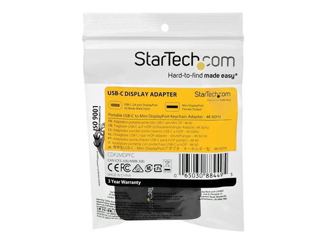 CDP2MDPFC - StarTech.com Compact USB C to Mini DisplayPort Adapter, 8K 60Hz/4K USB-C to mDP 1.4 Video Converter w/Keychain Ring, USB Type-C DP Alt Mode (HBR3 HDR DSC) to mDP Monitor, TB3 Compatible