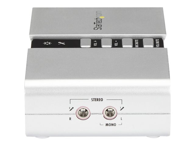 Specifikation Produktbeskrivning StarTech.com 7.1 USB-audio-adapter externt ljudkort med SPDIF digital audio - ljudkort - USB 2.0 Typ av enhet Ljudkort Modell Extern Typ av gränssnitt USB 2.0 Dimensioner (BxDxH) 10 cm x 6 cm x 2.5 cm Vikt 100 g Färg Silver Ljudutgångsläge 7.1-kanals surround Samplingsfrekvens 48 kHz (max) Maskinvarostyrenheter och indikatorer Volymkontroll, dämpningsknapp Systemkrav Microsoft Windows 2000 Server, Microsoft Windows Vista (32/64 bits), Microsoft Windows 7 (32/64 bits), Microsoft Windows XP (32/64 bits), Microsoft Windows Server 2003 (32/64-bits), Windows 8 (32/64 bitars), Microsoft Windows Server 2008 R2 (32/64-bitars), Windows 8.1 (32/64 bitars), Windows 10 (32/64 bits) Tillverkarens garanti 2 års garanti Designat för P/N: MU15MMS, MU6MMS -