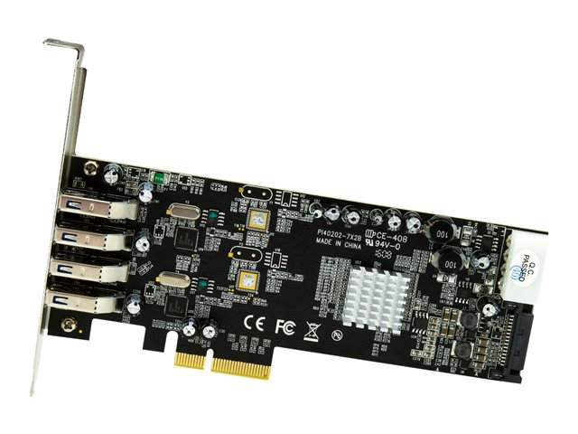 PEXUSB3S42V - StarTech.com PCI Express (PCIe) SuperSpeed USB 3.0-kortadapter med 4 portar och 2 dedicerade kanaler på 5 Gbps – UASP – SATA/LP4-ström