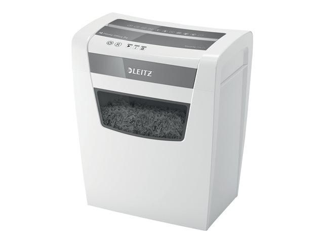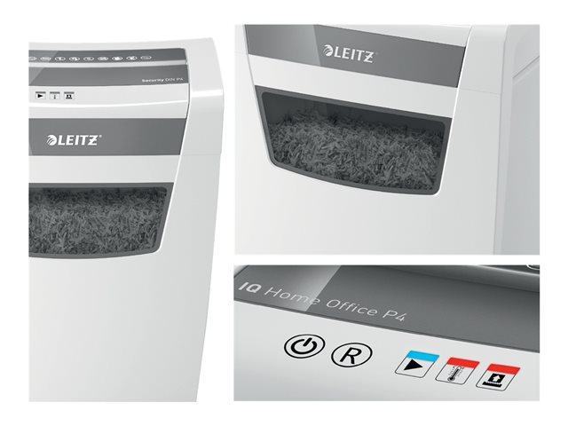 Specifikation Produktbeskrivning Leitz IQ Home Office P4 - dokumentförstörare Typ av enhet Dokumentförstörare - vit Säkerhetsnivå P-4 Skärtyp Fragmentskärning Remsstorlek 4 x 28 mm Papperssamlarens kapacitet 23 liter Antal ark åt gången 10 Hastighet 1,8 m/min Pappersinmatningsbredd 220 mm Strimlor Gem, papper Spänning 220 - 240 V Dimensioner (BxDxH) 35.6 cm x 23.9 cm x 42.4 cm Vikt 6.5 kg Tillverkarens garanti 3 år med produktregistrering - Utökad specifikation