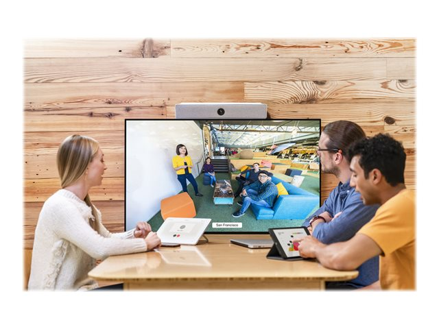 Specifikation Produktbeskrivning Cisco Webex Room Kit Mini - paket för videokonferens Typ av enhet Paket för videokonferens VoIP-protokoll H.323 Kodek H.264, H.265, H.239, G.711, G.722, G.729, G.722.1, AAC-LD, Opus Digitalt signaleringsprotokoll SIP, H.245, H.460.18, H.460.19, BFCP Data Compression Protocol G.711, G.722, H.263, H.264, G.722.1 Videoingång Digital videokamera - HDMI Videoutgång Codec-kretskort Ljudingång Mikrofoner Ljudutgång Högtalare Inmatningsenhet 10-tums pekskärm (kabelansluten) Nätverk Ethernet, Fast Ethernet, Gigabit Ethernet, IEEE 802.11b, IEEE 802.11a, IEEE 802.11g, IEEE 802.11n, Bluetooth 4.0, IEEE 802.11ac Strömtillförsel AC 120/230 V (50/60 Hz) - Utökad specifikation