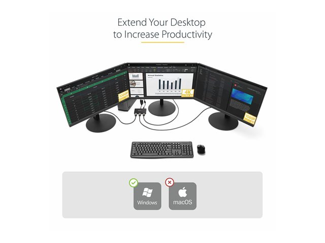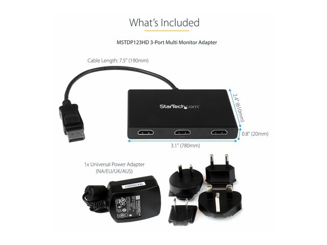 DisplayPort 1.2 till 3x HDMI MST-hubb - Tredubbla 1080p HDMI-skärmar - Video-splitter för utökat skrivbordsläge endast på Windows-datorer - DP till 3x HDMI - Video/audiosplitter - 3 x HDMI - skrivbordsmodell - AC 100/240 V