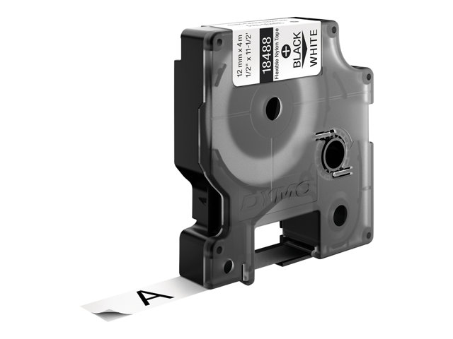 svart på vitt - Rulle (1,2 cm x 4 m) 1 kassett(er) flexibel etikettejp - för Rhino 4200, 4200 Kit, 5200, 5200 Hard Case Kit; RhinoPRO 6000; DYMO LabelWriter 450 Duo