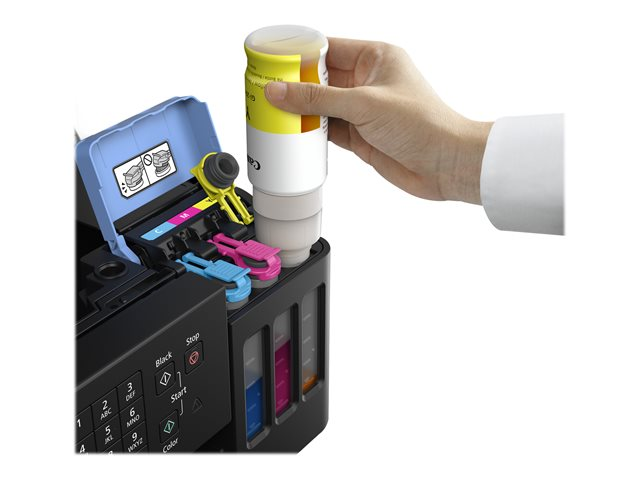Specifikation Produktbeskrivning Canon PIXMA G7050 - multifunktionsskrivare - färg Typ av enhet Multifunktionsskrivare Faxtyp Super G3 - vanligt papper Utskriftsteknik Bläckstråle (färg) Bläckstråleteknik Canon FINE (Full-lithography inkjet Nozzle Engineering) - 4-färgs Återfyllningsbar tank Ja Max utskriftshastighet Upp till 13 ipm (bilder per minut) (mono)/upp till 6.8 ipm (bilder per minut) (färg) Max utskriftsupplösning Upp till 4800 x 1200 dpi (mono)/upp till 4800 x 1200 dpi (färg) Max faxöverföringshastighet 33.6 Kbps Faxupplösningar 300 x 300 dpi, 200 x 200 dpi Skanning 1200 x 2400 dpi Originalstorlek A4 (210 x 297 mm), Legal (216 x 356 mm) (max) Originaltyp Ark Dokumentmatarens kapacitet 35 ark Mediastorlek Legal (216 x 356 mm), A4 (210 x 297 mm) (max) Mediatyp Kuvert, vanligt papper, transfertryck, fotopapper, glansigt fotopapper, matt fotopapper, högupplösningspapper, lysterpapper, halvglättat fotopapper, självhäftande foton, magnetiskt fotopapper Standard mediekapacitet 350 ark Kapacitet hos förbikopplande dokumentmatare 100 ark Automatisk duplex Ja (utskrift) Anslutningsmöjlighet Ja Gränssnitt USB 2.0, LAN, Wi-Fi(n) AirPrint-aktiverad Ja Kontorsmaskinfunktioner PIXMA Cloud Link, åtkomstpunktläge, påfyllnadsbar bläcktank Strömtillförsel Växelström 120/230 V (50/60Hz) Dimensioner (BxDxH) 40.3 cm x 36.9 cm x 23.4 cm Vikt 9.6 kg Tillverkarens garanti 2 års garanti (Frankrike - 3 år med produktregistrering) -