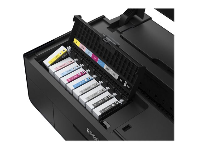 Specifikation Produktbeskrivning Epson SureColor SC-P600 - storformatsskrivare - färg - bläckstråle Typ av skrivare 13" storformatsskrivare - bläckstråle - färg Vikt 15 kg Bläckstråleteknik Epson Micro Piezo med Active Meniscus Control (AMC) Bläckpalett (färger) 8-färgs - cyan, intensiv magenta, gul, ljussvart, ljuscyan, intensiv ljus magenta, mycket ljust svart, fotosvart eller mattsvart Mediestorleksklass A3/Ledger Max. mediestorlek Super A3/B (330 x 483 mm), Roll (33 cm), A3 Plus (329 x 483 mm) Maximal mediestorlek (anpassad) 330 mm x 483 mm Utskriftshastighet Upp till 6 spm - svartvit