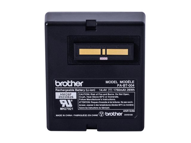 Specifikation Produktbeskrivning Brother PA-BT-004 - batteri för skrivare - återuppladdningsbar - Li-Ion - 1750 mAh - 26 Wh Typ av enhet Batteri för skrivare Batteri Litiumjon - 1750 mAh - 26 Wh - Utökad specifikation